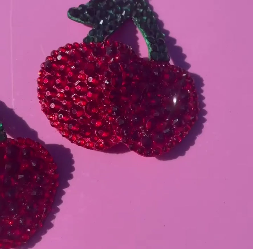 Freshly picked and ready pop! Our Cherry Pop pasties are cute as pie. Featuring double heart cherries on a vinyl backing for easy cleaning. These are standard in red with emerald green stems.