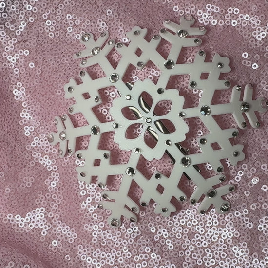 snowflake fascinator, snowflake hat, winter fascinator, holiday hair clip, rhinestone snowflake headpiece, burlesque headpiece, drag fascinator, 3d printed fascinator, Christmas fascinator, New Year’s Eve hair accessory, winter wonderland costume, showgirl headpiece, festival headwear, Viva La Bombshell Burlesque accessories